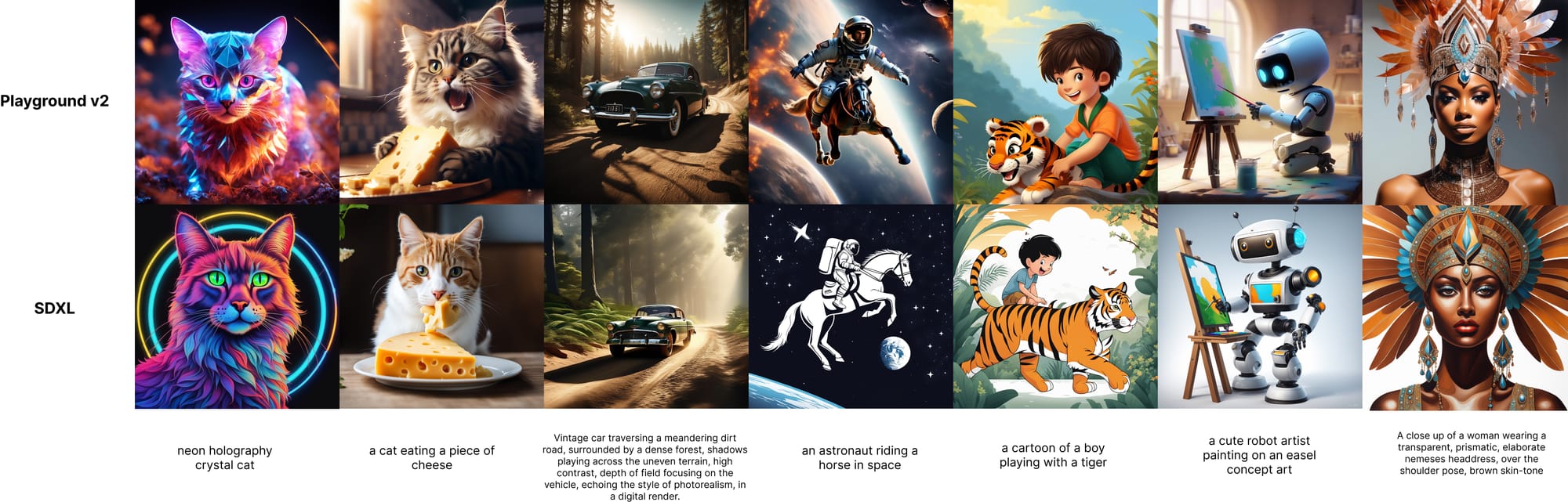 Below is a comparison table of select prompts to provide a sense of quality, alignment, and aesthetics: